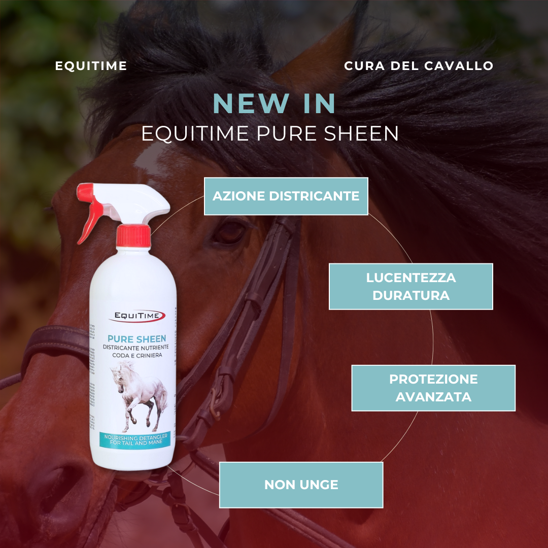 Equitime Pure Sheen – Spray districante e nutriente per coda, criniera e manto 1 lt